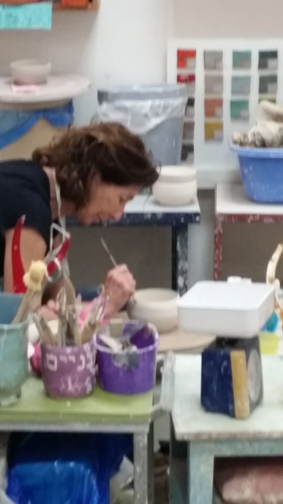 פגשתי אותה בסדנת הקרמיקה בזמן שכלי החרס בתנור והיא צובעת ומסדרת.