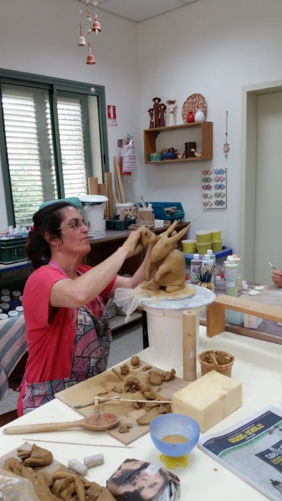 "סדנת קרמיקה נפתחה עוד בזמן שהייתה תחביביה בגזית והתנור עמד בה. תקופה מסוימת גיגי הולצמן ויפעת מל קיימו חוגים לילדים. לאחר סיום הלימודים באורנים (תואר בחינוך לאומנויות ותעודת הוראה) עם כוונה להמשיך ללימודי טיפול באומנויות, לקחתי פסק זמן וקבלתי על עצמי את ניהול הבריאות והרווחה. במקביל חדשתי עם גיגי את חוגי הקרמיקה לילדים."